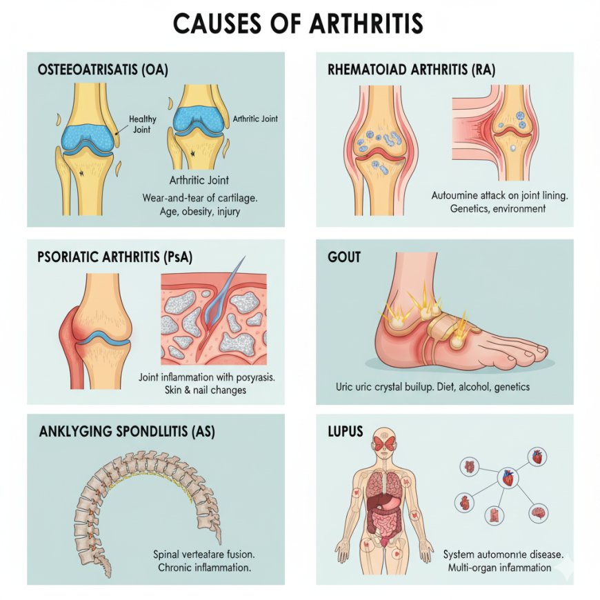The causes of arthritis are diverse and depend heavily on the specific type. Here are some of the most common categories: