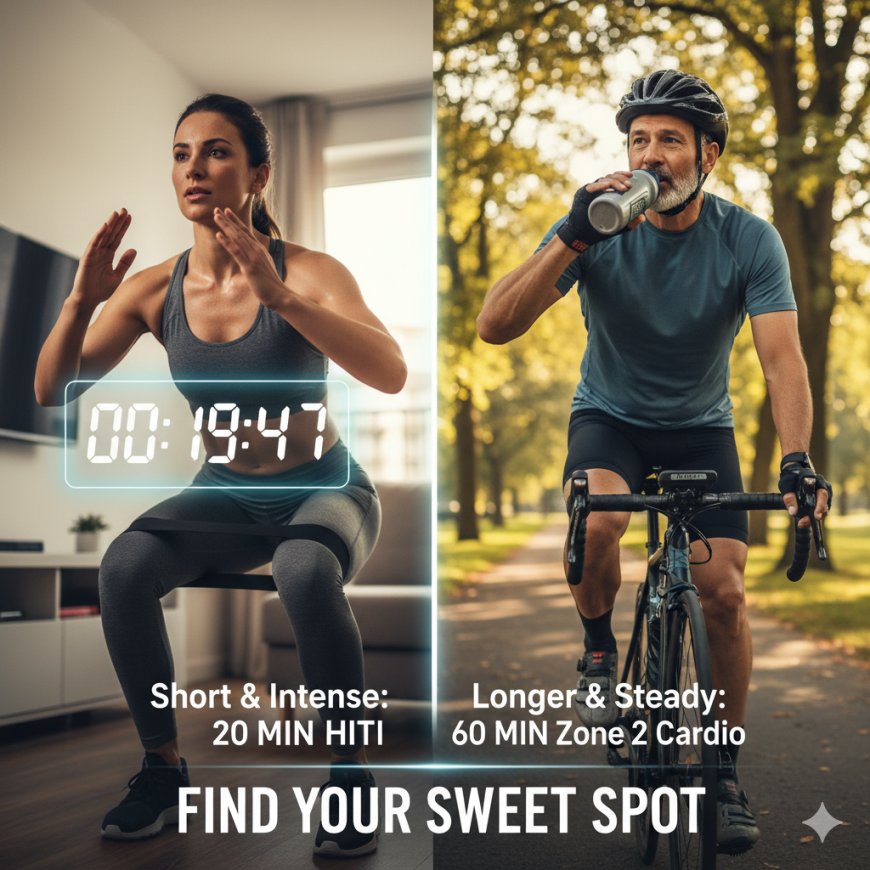 If you only have 20-30 minutes: Make it count! A focused, intense 20-minute session is far better than skipping exercise entirely because you couldn't commit to an hour.